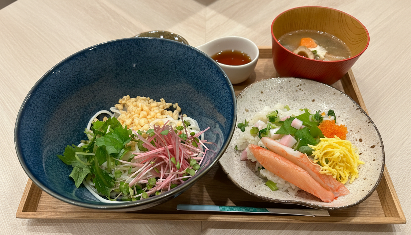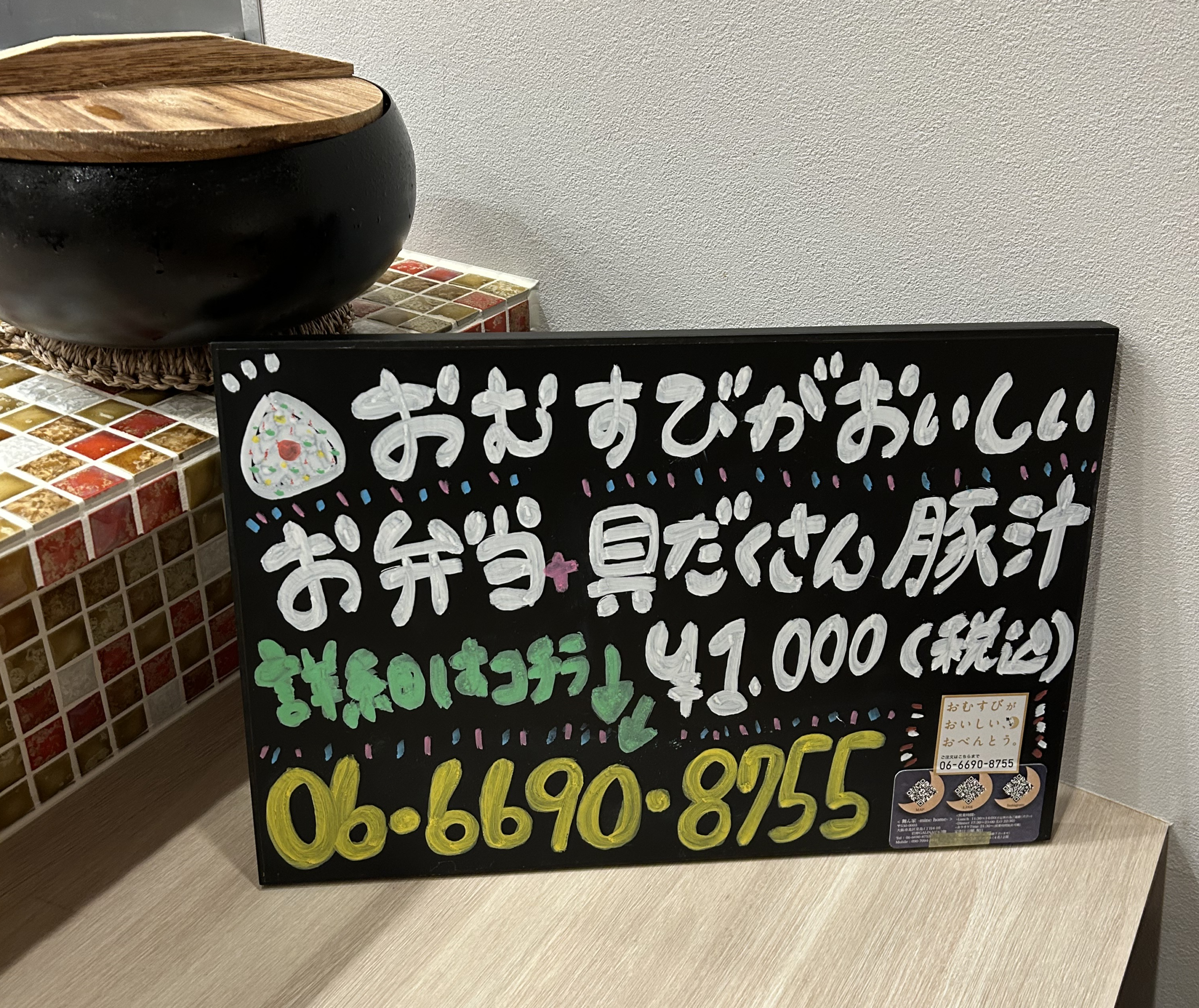 心をこめて握ったおむすびと、旬の食材をたっぷり使った具だくさん豚汁のセットです。 ほっと落ち着く家庭の味を、できたてのままお楽しみいただけます。 お昼ごはんにも、ちょっとした差し入れにもぴったり。